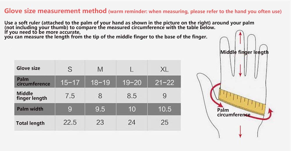 SizeLength(CM)Wrist Girth(CM)Middle Finger Length(CM)Width(CM)