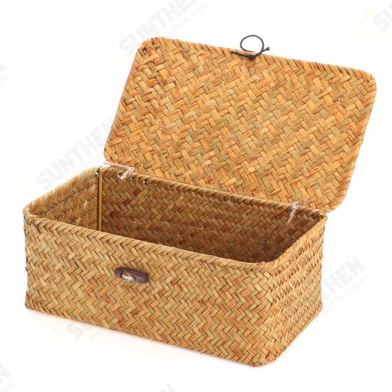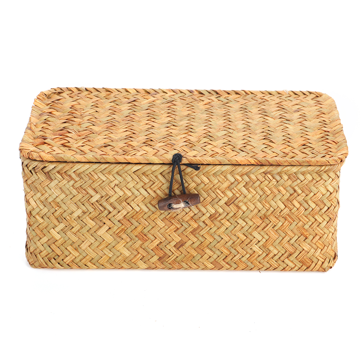 Storage Box Rectangular Straw Flower Basket with Cover Home Garden Fruit Clothes