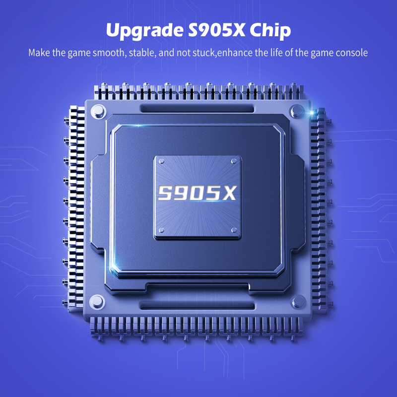 Upgraded S905X chip,perfect support for PSP/ PS1/N64/NDS,etc,running large games without freezing or dropping frames.