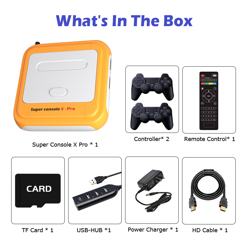 Super Console X Pro Retro Video Game Console S905X Chip Built-in 50+ Emulators 50000+ Retro Games Dual System Mode Support Multiplayer Multilanguage 4K HD Output 256G US Plug Gaming Set Top Box for PSP/PS1/N64/DC/NAME