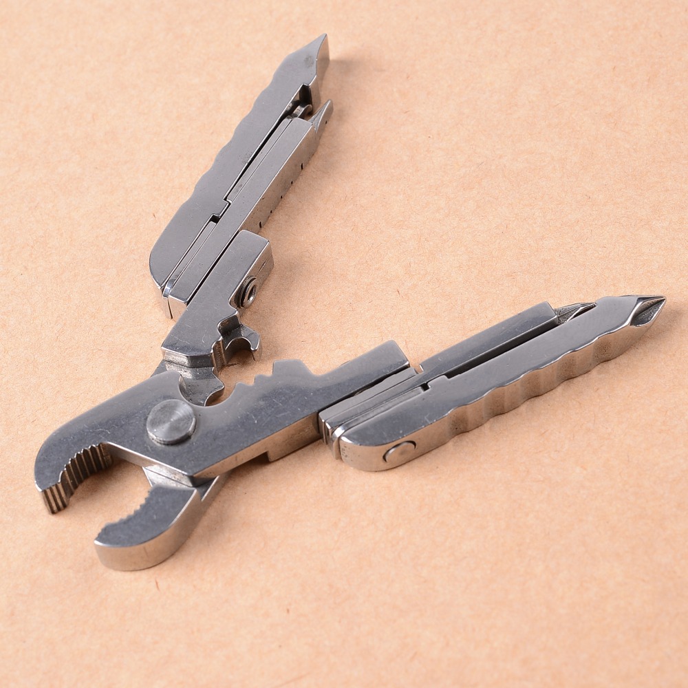 The key-sized super 15-in-1 folding tool (15-in-1) can be hung on the key ring. Unlike most similar products, it is not only capable of providing multiple sizes of splay and Phillips screwdrivers. Tools such as pliers and wire strippers are also provided, which are more practical.