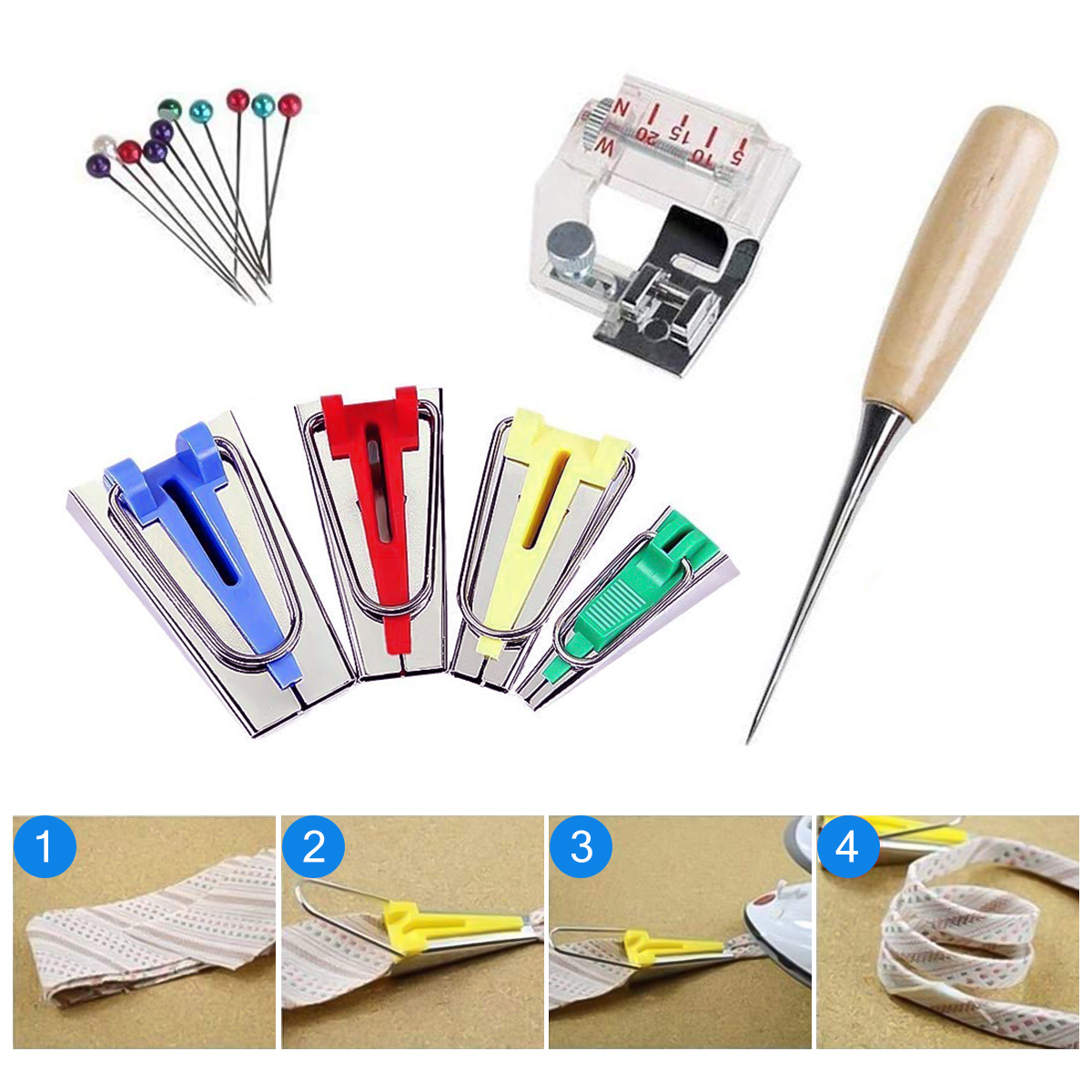 Sewing Tape Maker Kits 4 Sizes 6/12/18/25MM Household DIY Fabric Patchwork Accessories Tool with Binding Foot Craft Clips Awl Quilter's Pin