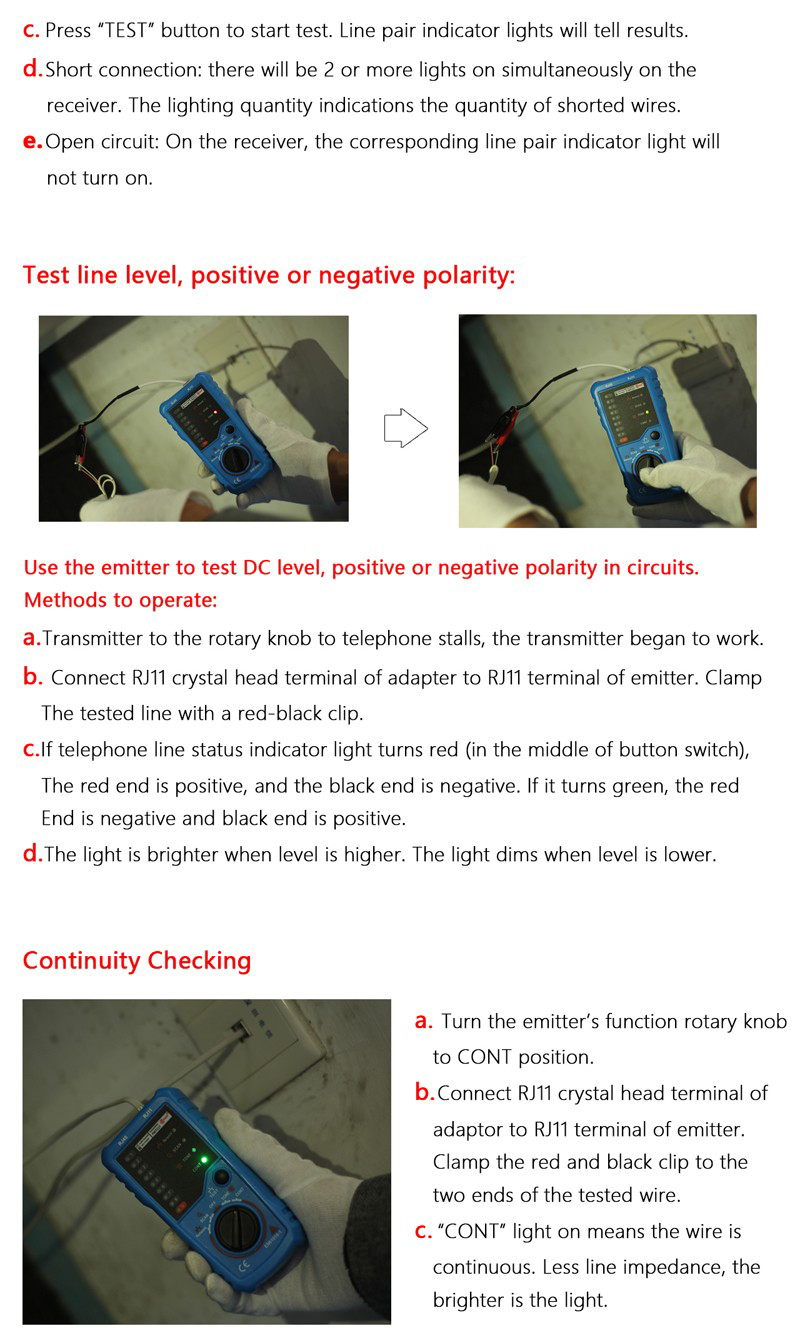 A necessary testing tool for telecommunication engineering, wiring engineering and network maintenance person.
