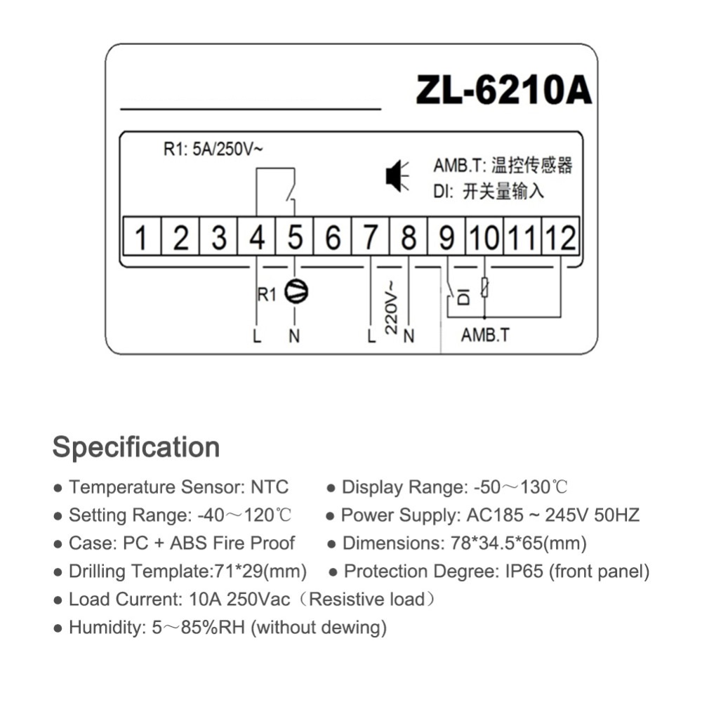ZL-6210A Digital Temperature Meter Thermostat Economical Cold Storage Controller