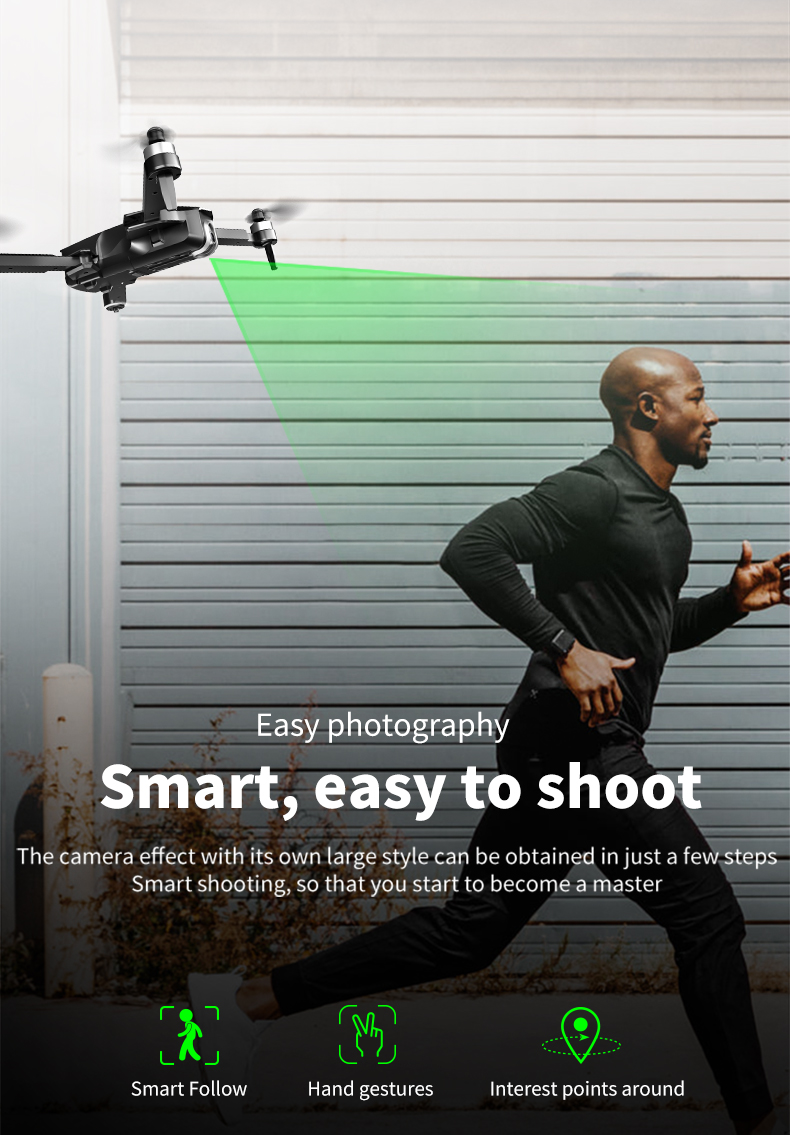 Function: Up/Down, Forward/backward, Turn left/right, Sideward flight, Barometric Altitude Determination, GPS Positioning, Geomagnetic/Headless Mode, One Key Automatic Return, One Key Follow, Interest Point Surround, Safety Protection: Low Power Protection(Automatic Return), Out of Control Protection(Automatic Return of Lost Signal)