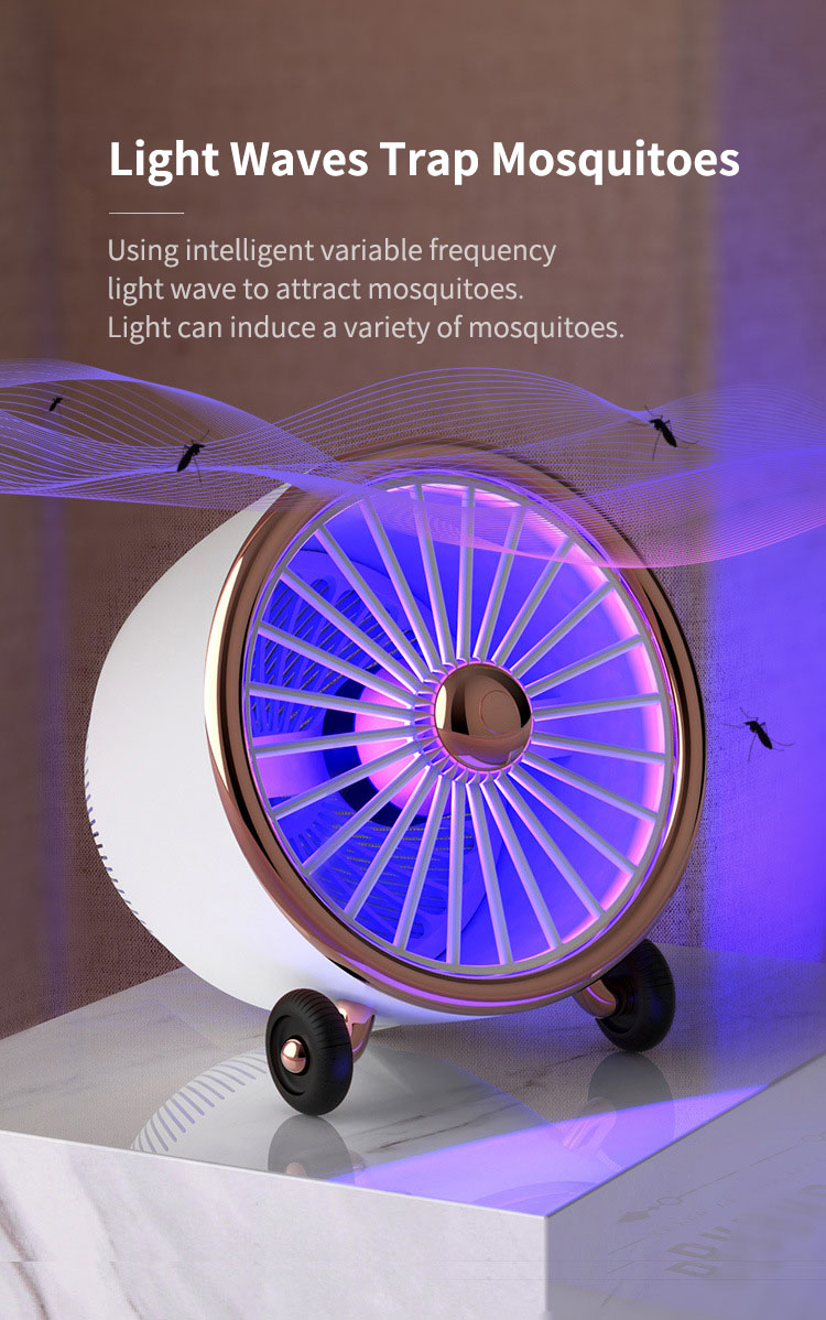 - Silent DC fan, large suction stirs the air, forms a spiral airflow to attract mosquitoes to the device and air dry to death