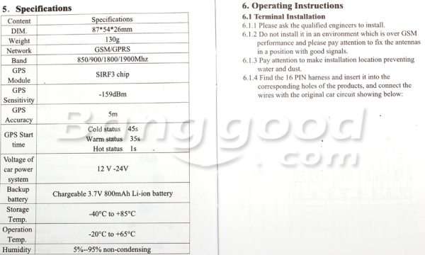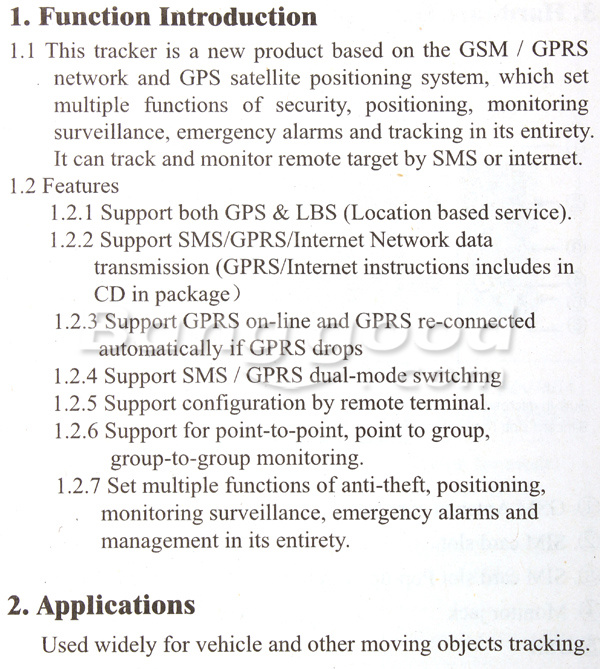 Other functions: SOS, Geo-fence, movement alarm, over speed alarm, accident alarm, voice monitoring etc.