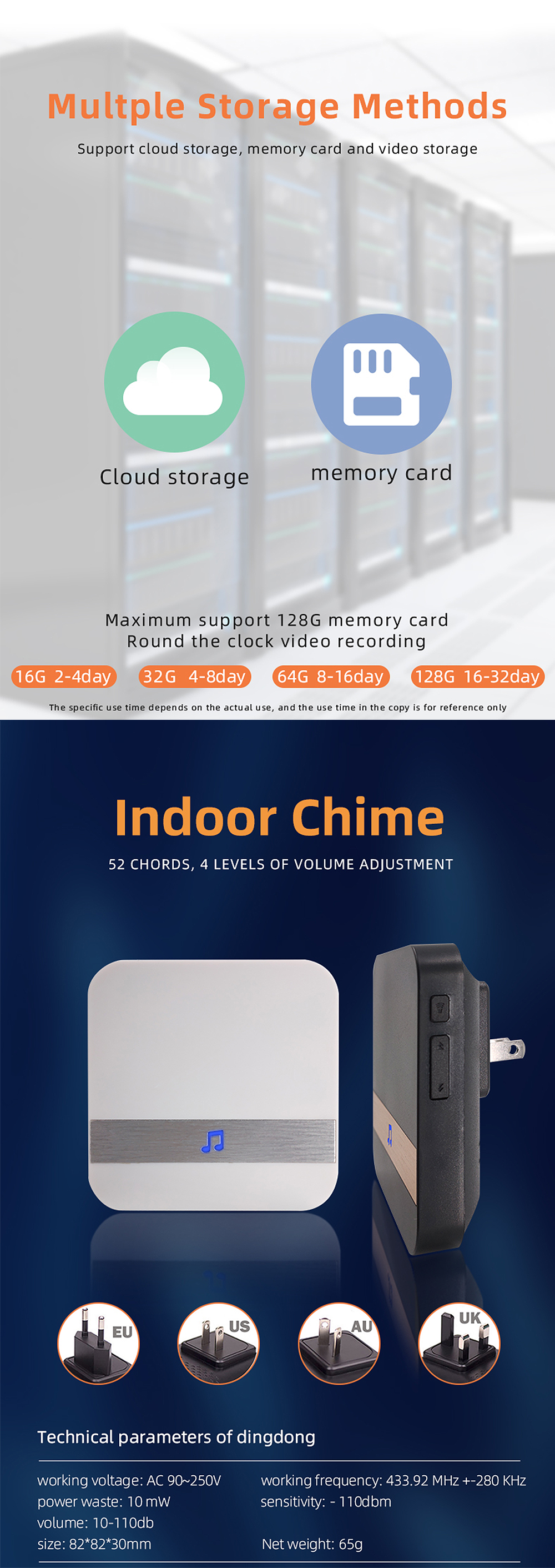 | Video | TF card recording, support mobile phone local recording, Cloud recording | |