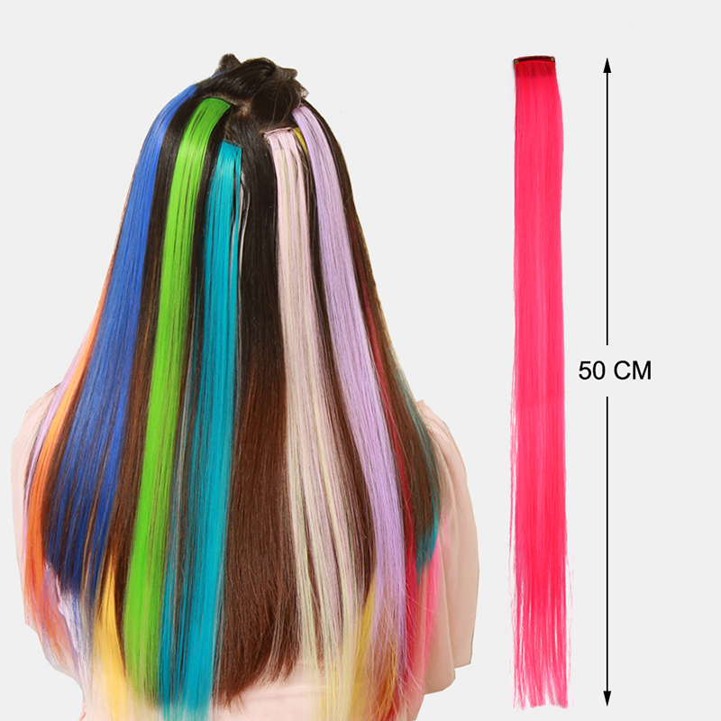 11 Colors Luminous Long Straight Wig Halloween Single Clip Synthetic Hair Extensions