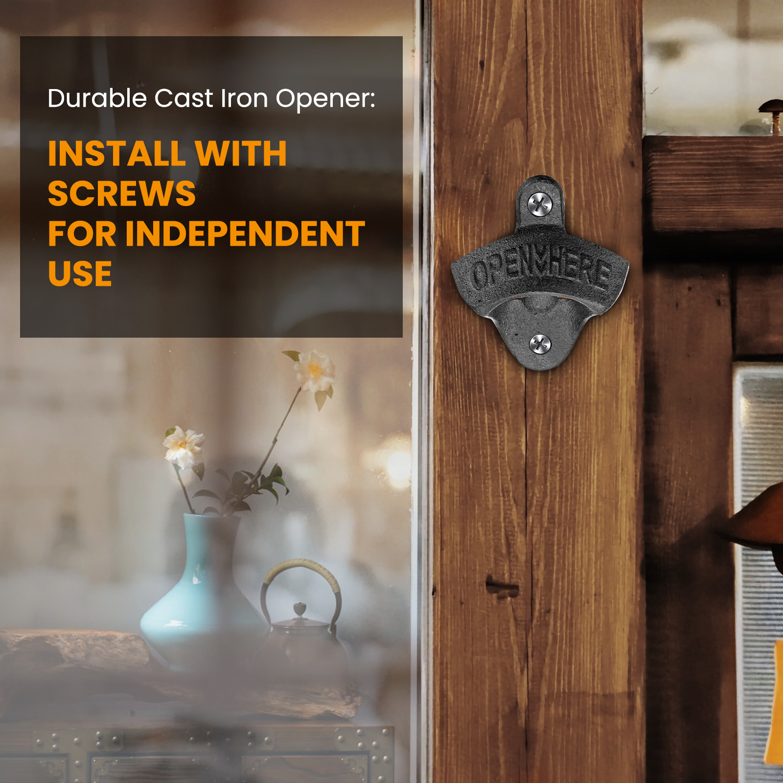 【Extra Stainless Steel Opener】Except for the Non-drilling magnet opener aimed at iron surface, this set includes another regular iron opener that suit for all surface(after drilling). 2 option together suit for all occasion such as fridge, kitchen, living room, balcony, bar counter, etc...Also a protective sticker as bonus come with the package.