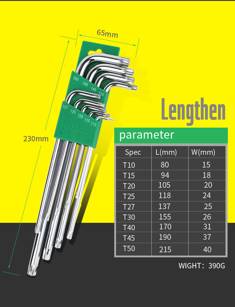 Inner Spline Allen Key with Middle Hole Wrench Set Torx Screwdriver Hand Tool Star Wrench